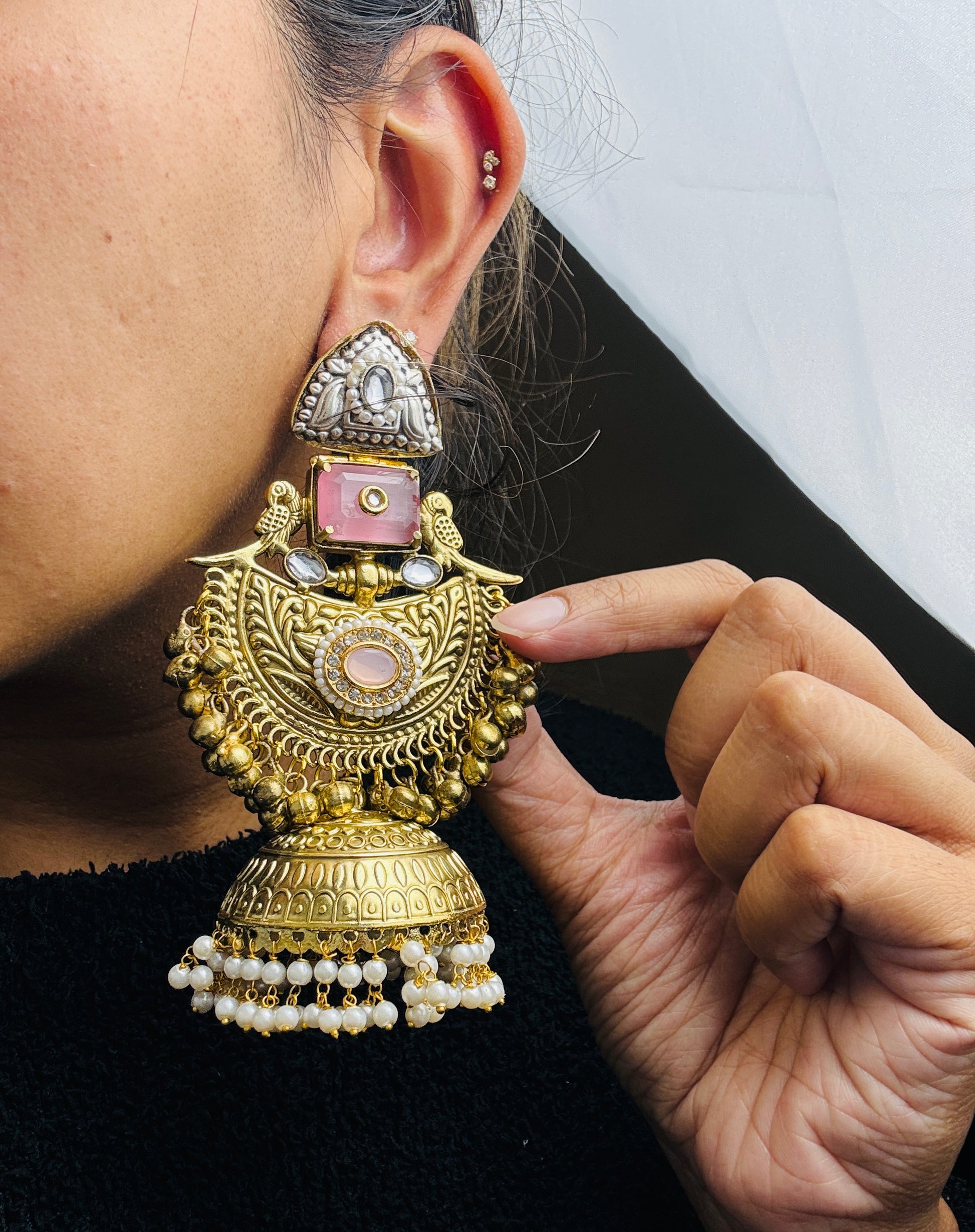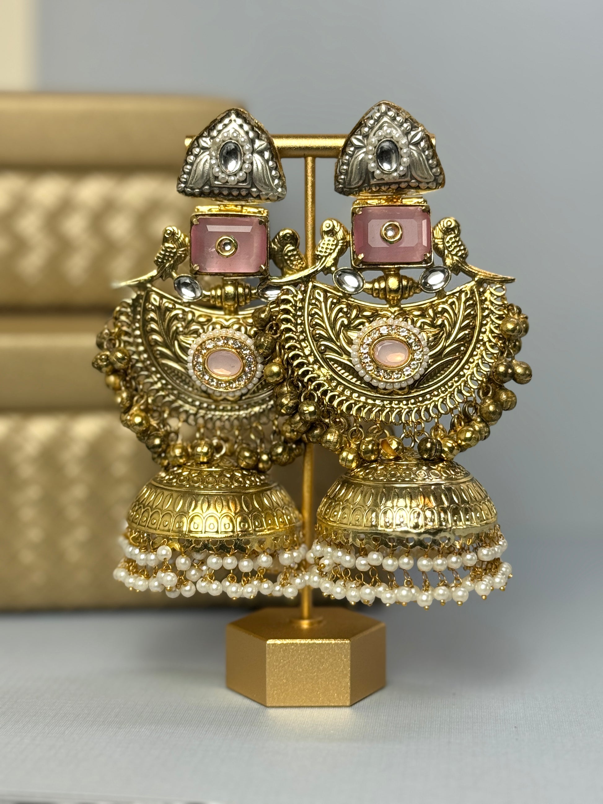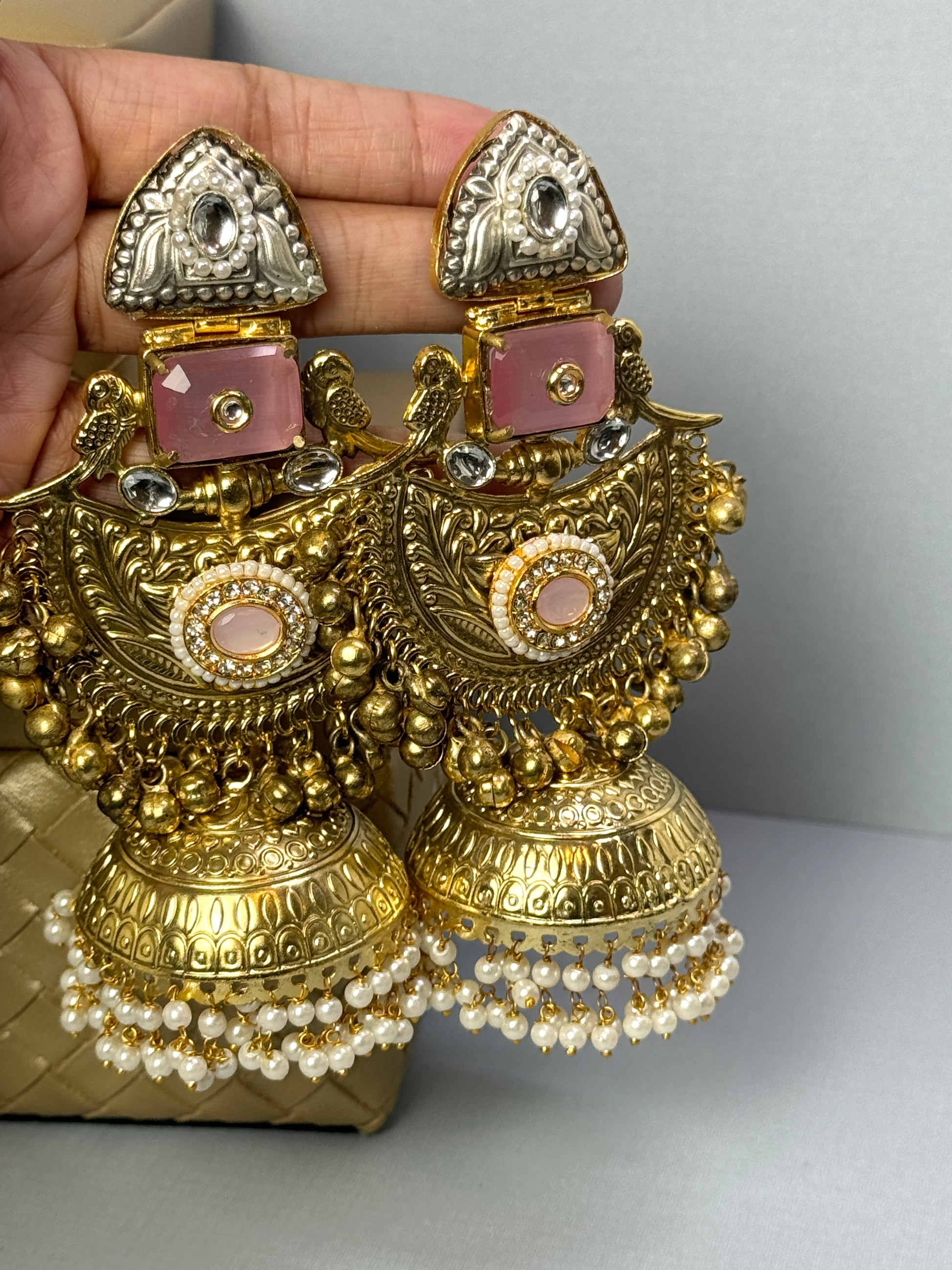 Baby Pink oversized jhumkas- Lux