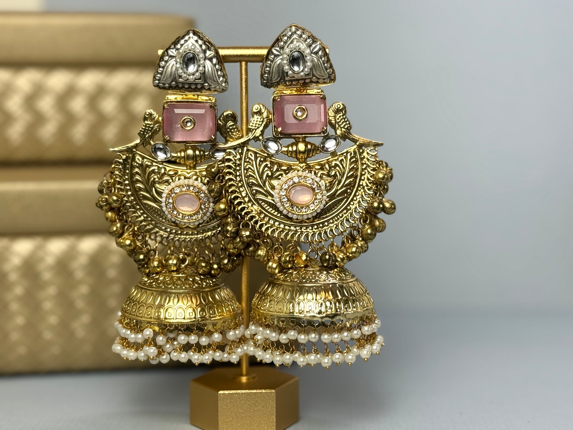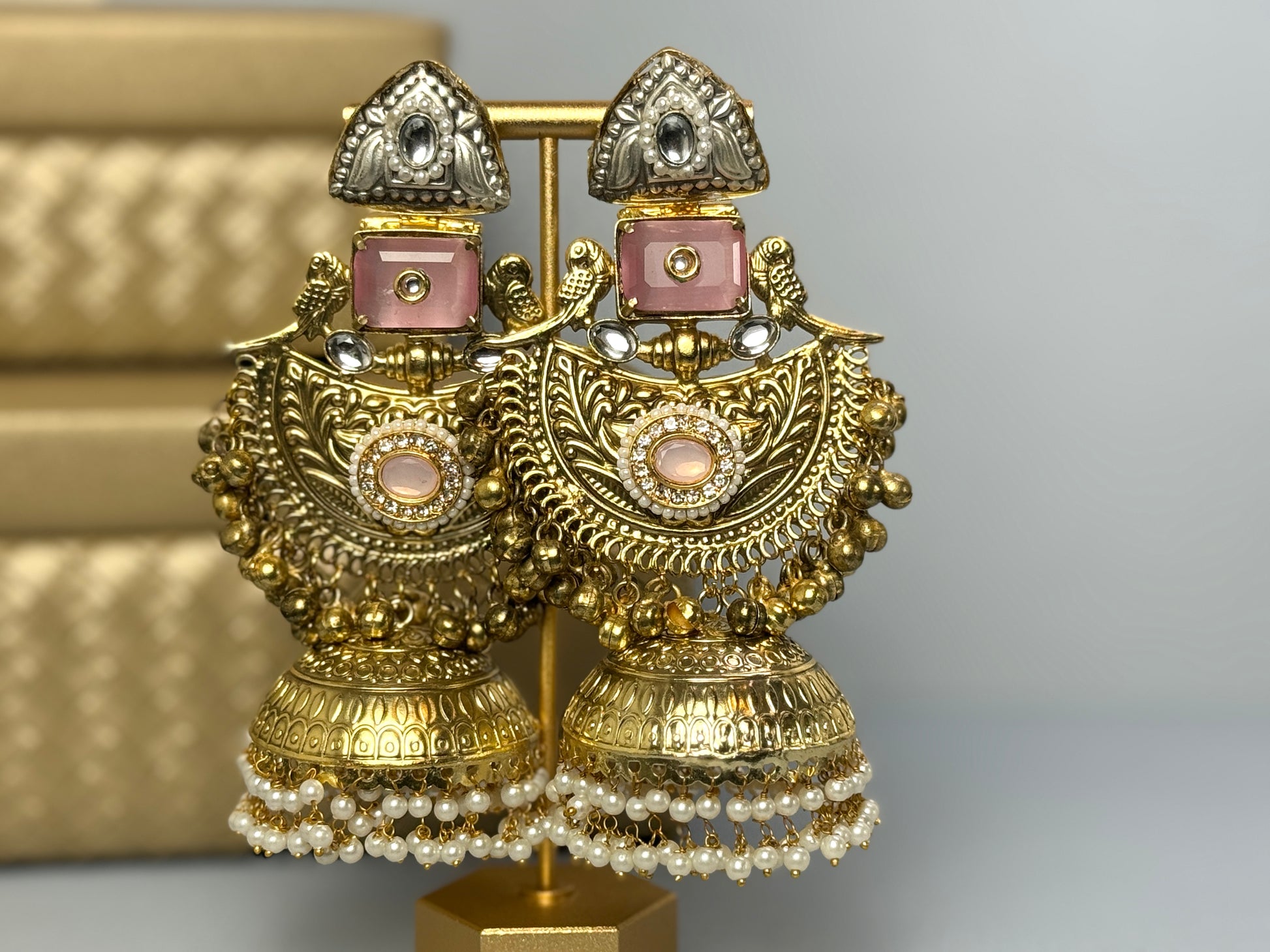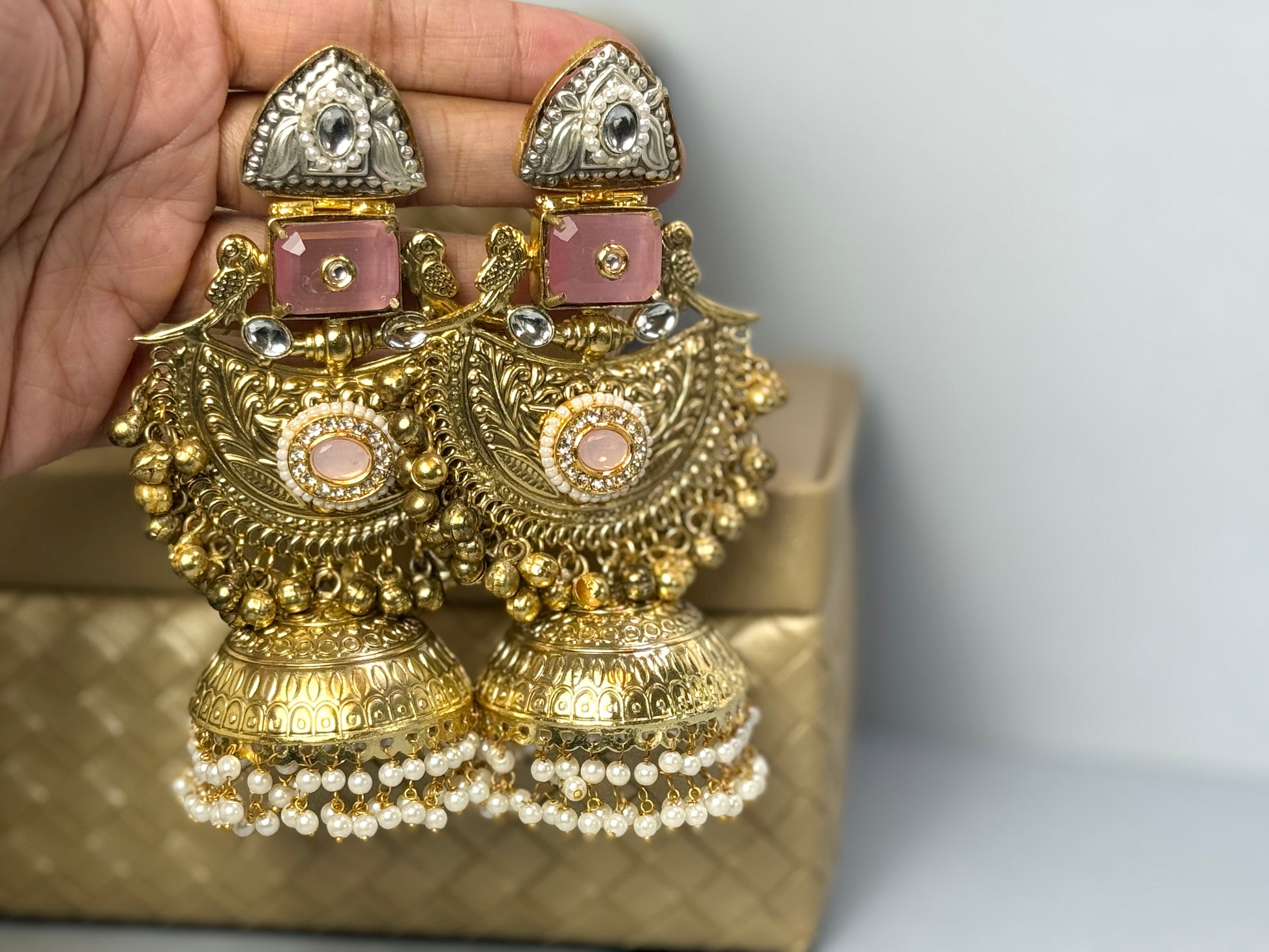 Baby Pink oversized jhumkas- Lux