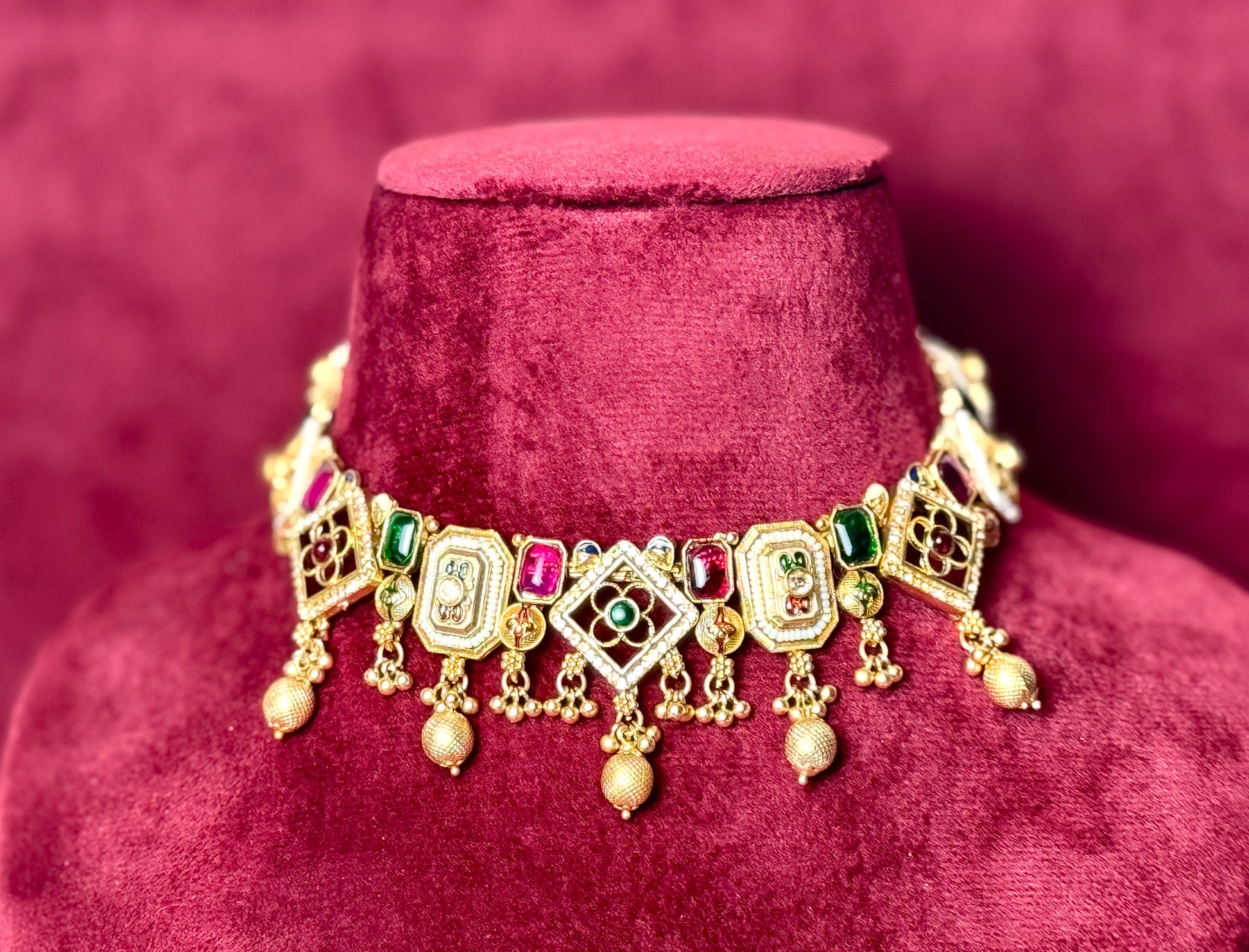 Gold Choker Red and Green Riva 1004