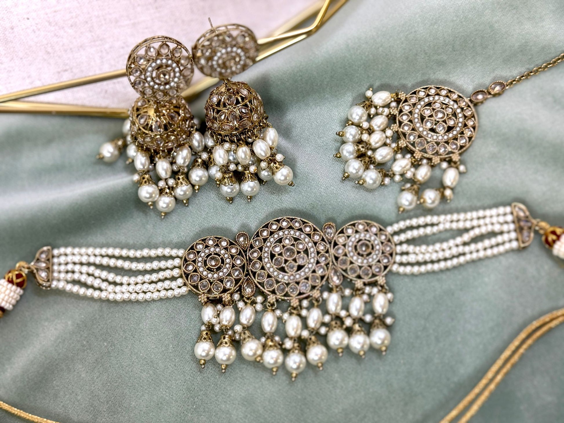 Our gold pearl choker is a beautiful and classic piece of jewellery that will elevate any ensemble. This choker is the ideal combination of refinement and appeal because it was expertly crafted and embellished with shiny pearls. This piece makes a perfect gift for yourself or a loved one.