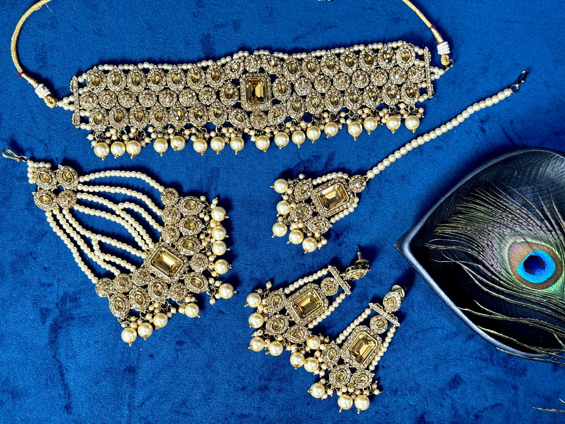 Elevate your grace with our Gold Pearl Choker Set, a timeless blend of sophistication and tradition. The lustrous pearls dance along the delicate gold chain, creating a statement piece that effortlessly complements any ensemble. Embrace the allure of classic beauty with this exquisite choker set.