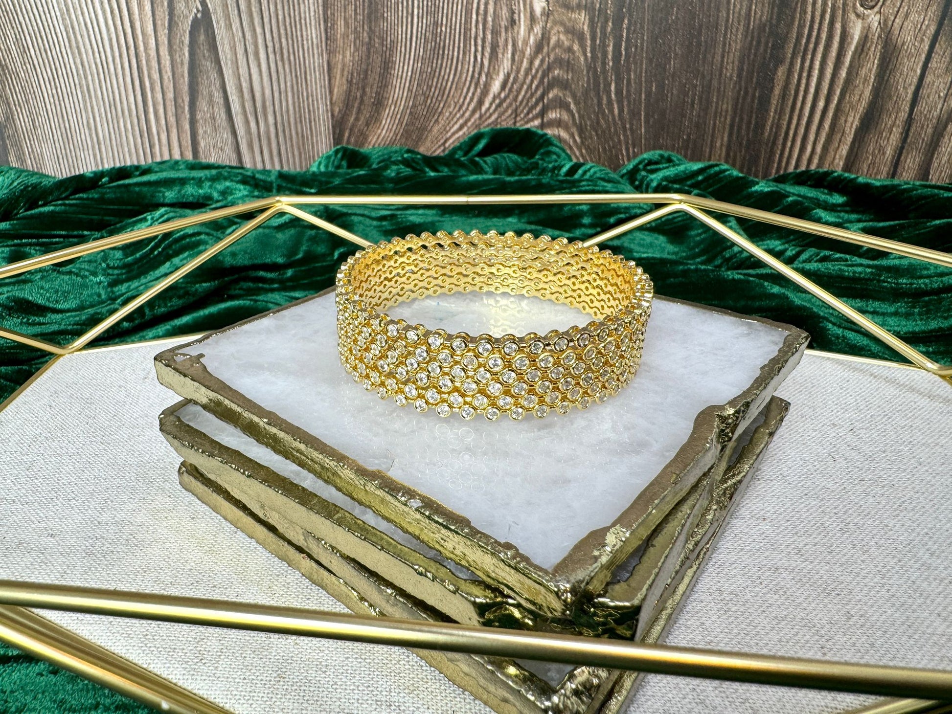 Elevate your style with our exquisite Gold Rhinestone Bangles, a perfect blend of sophistication and glamour. Sparkle and sophistication come together in this stunning accessory.