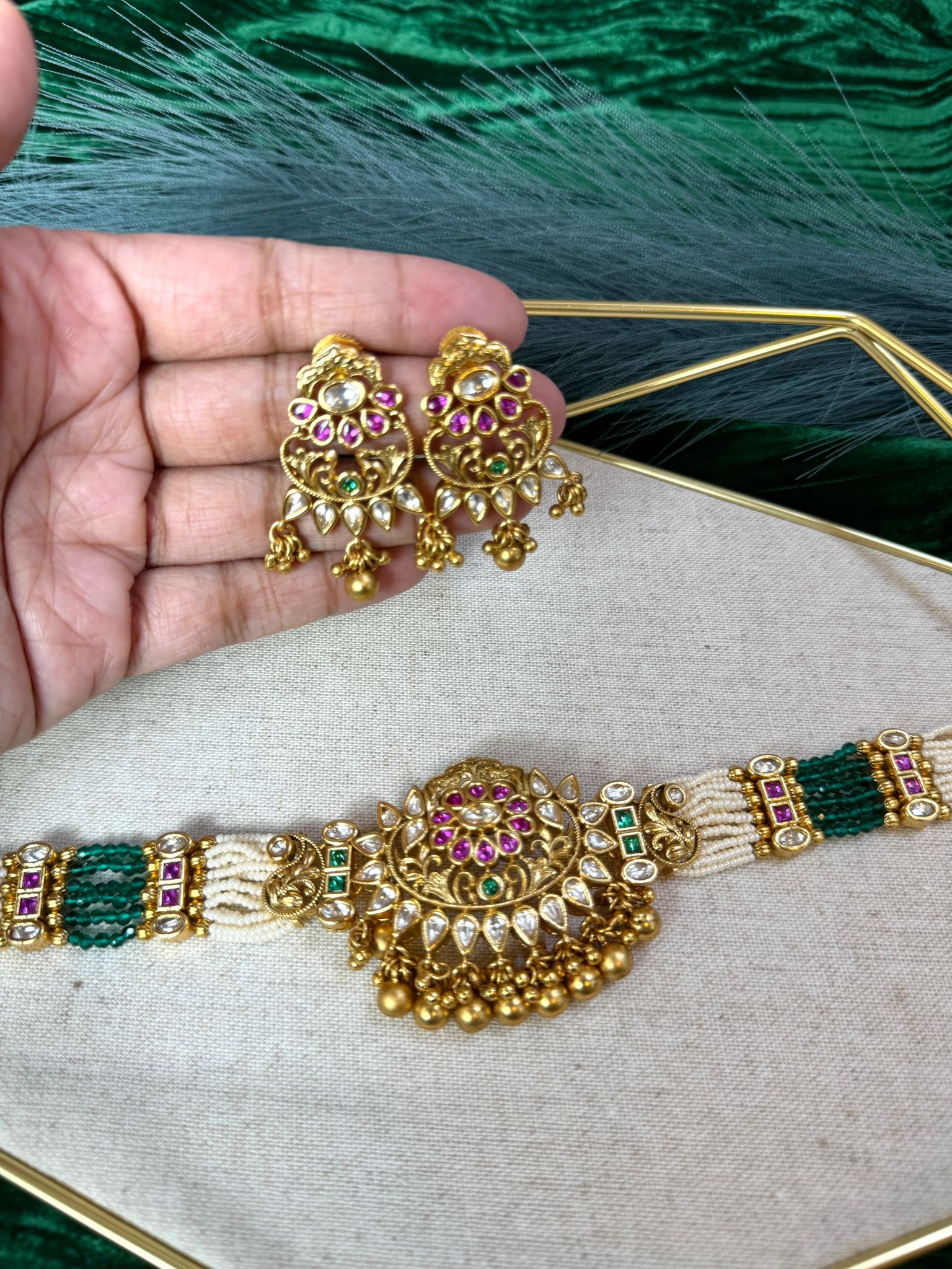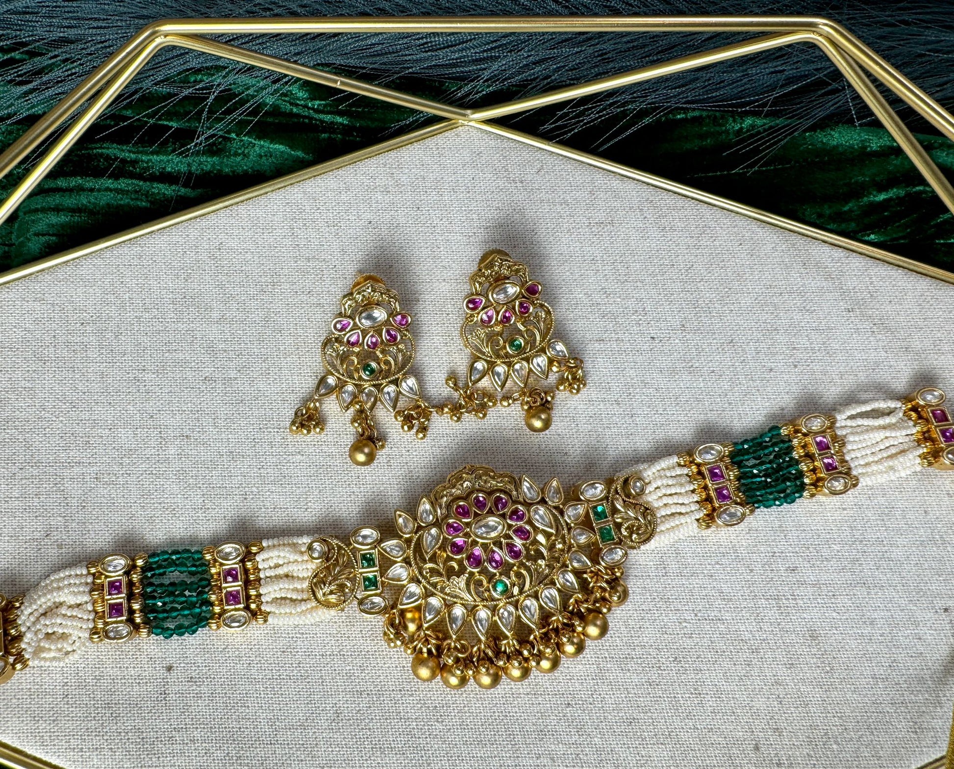Adorn yourself with the captivating beauty of the Green Magenta Pearl Set, a stunning ensemble that harmoniously blends vibrant green and magenta hues, creating a timeless and elegant accessory for any occasion.