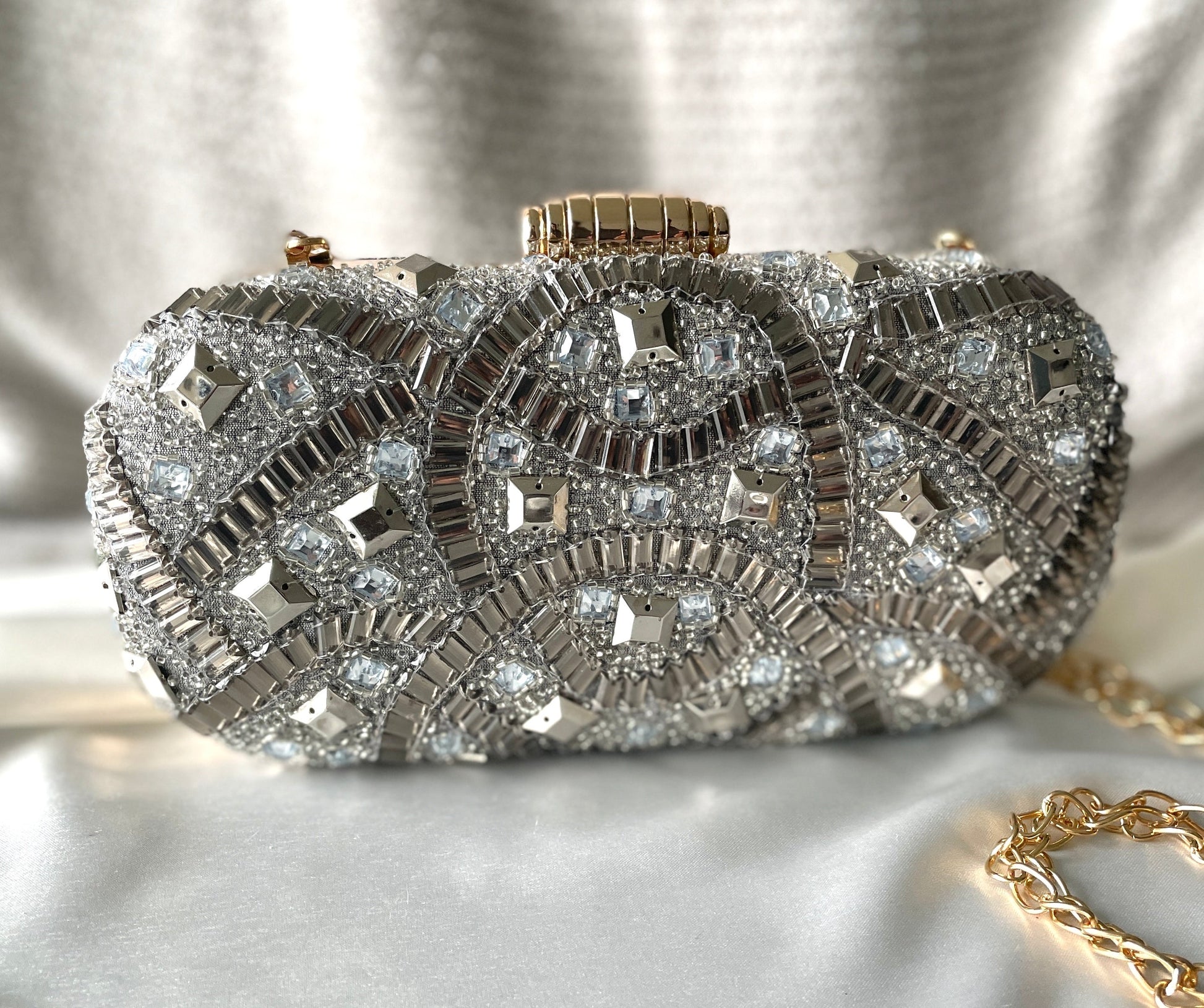 Elegant and versatile, the Grey Bead Clutch exudes sophistication with its intricate beadwork, making it a perfect companion for both formal affairs and stylish casual outings. Elevate your ensemble with this understated yet glamorous accessory.