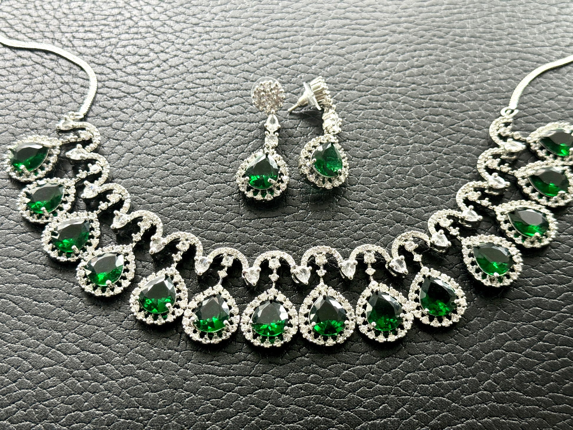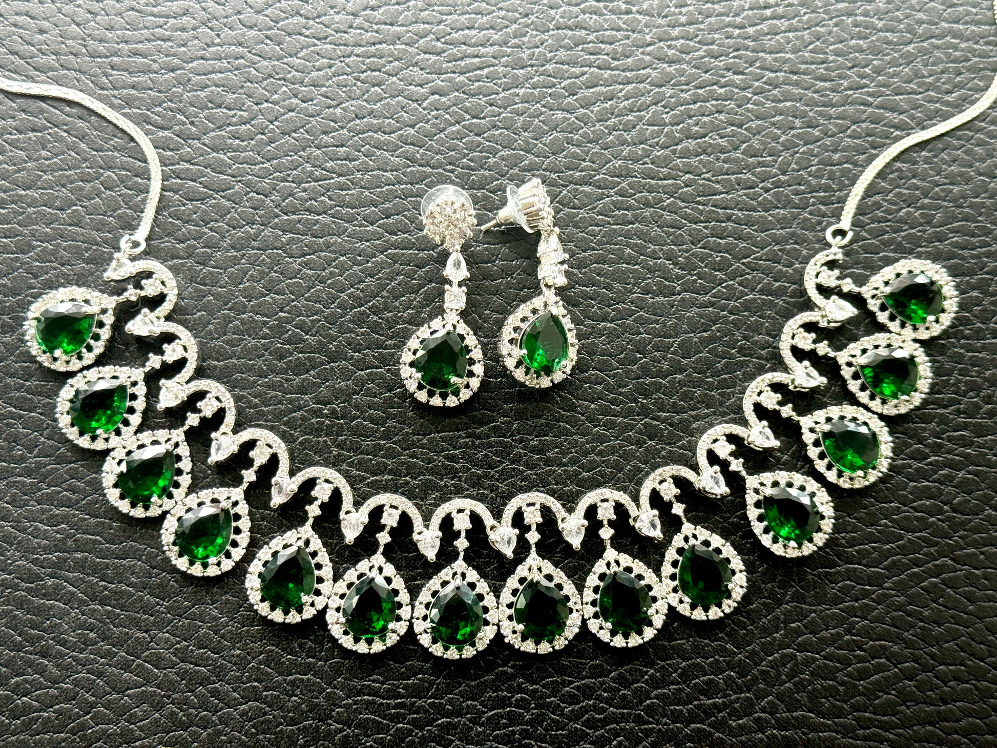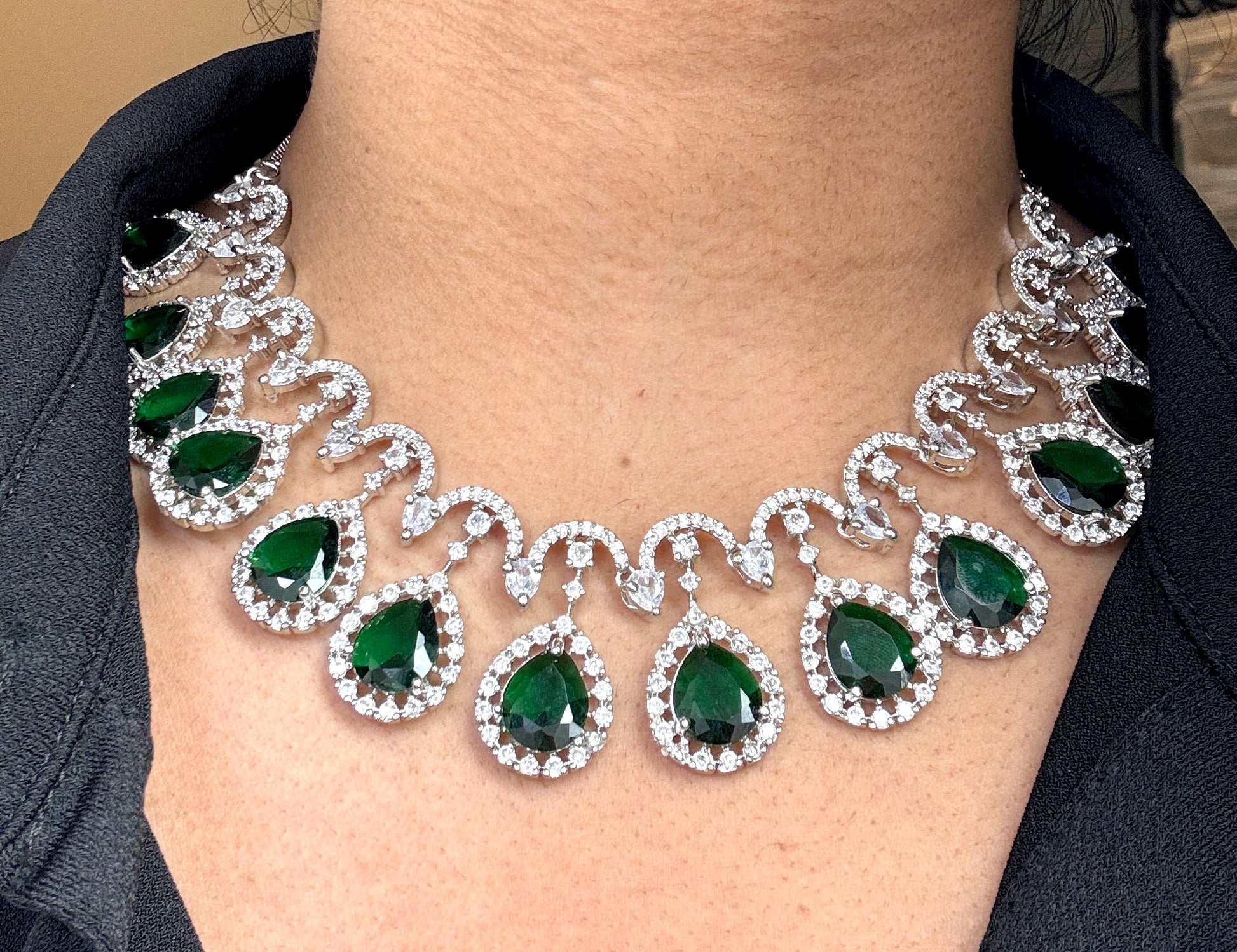 Green and Silver Ad Necklace with earrings