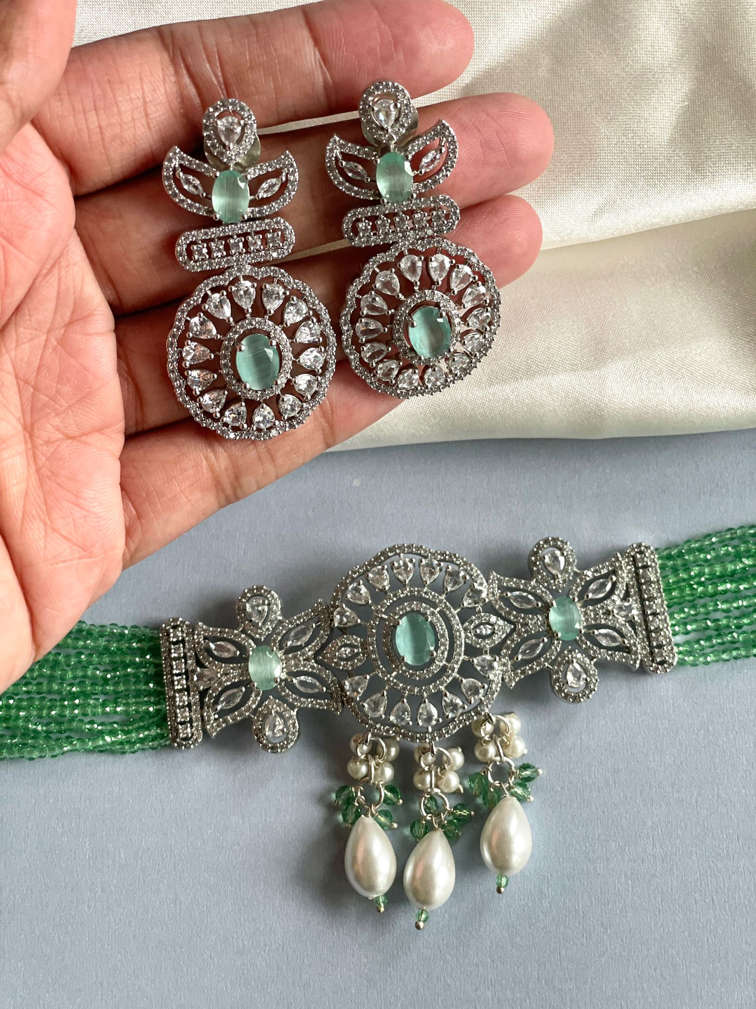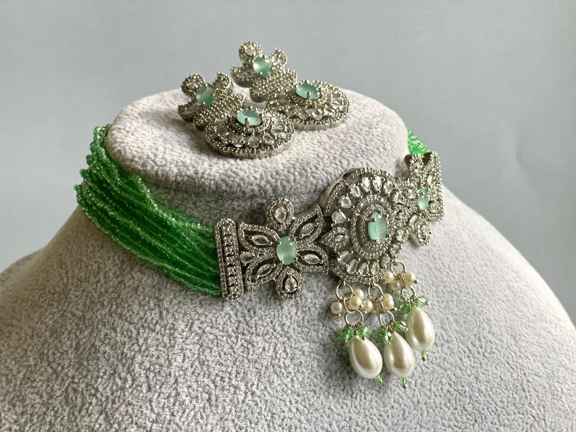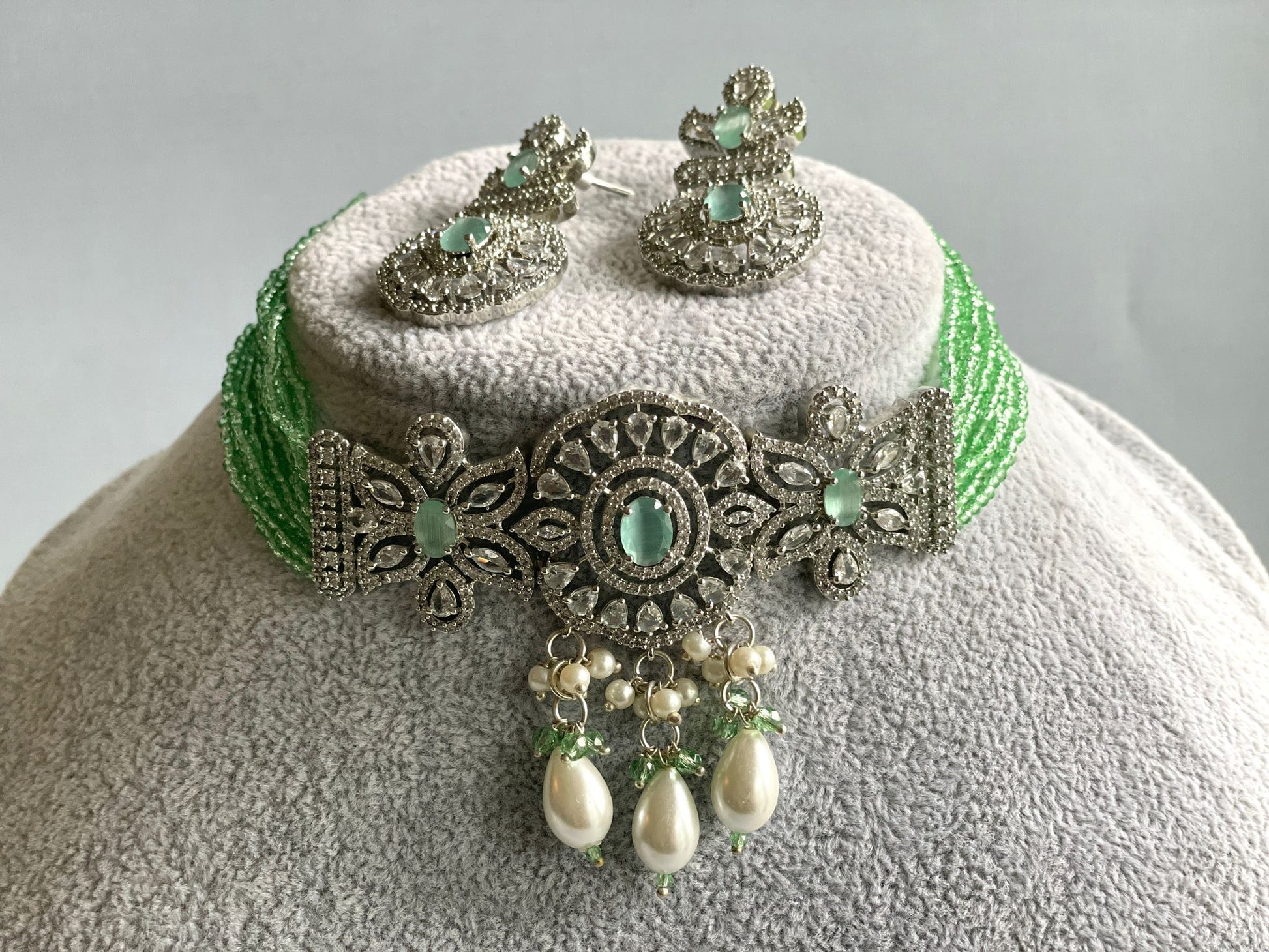 The Mint Green Silver Choker combines the relaxing charm of mint green with the timeless elegance of silver to create a fresh and alluring attractiveness. Add a touch of grace and vitality to your wardrobe by adorning your neckline with this beautiful necklace.