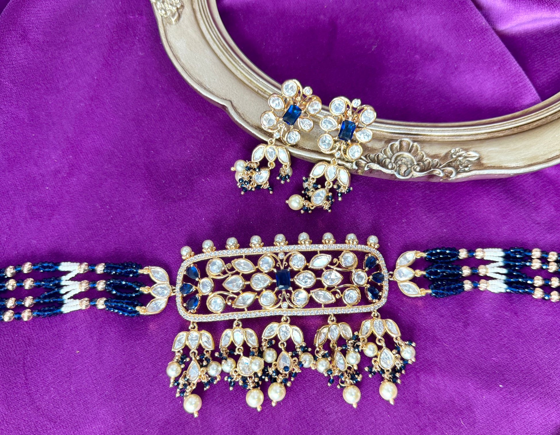 Elevate your style with our navy blue tyaani choker. Made with high quality real kundan.