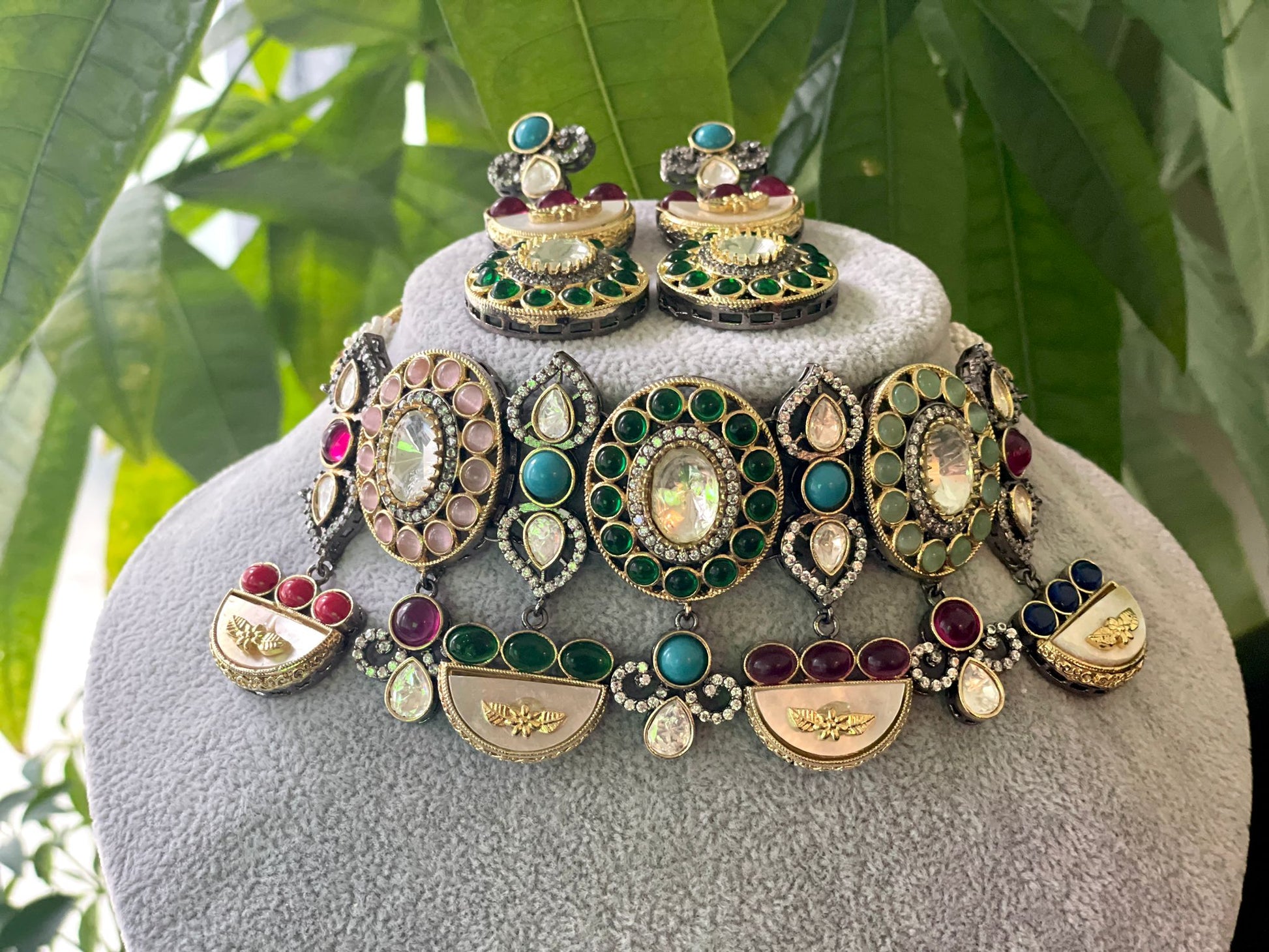 The Parisa necklace set is a beautiful Indian Victorian combination of sophisticated charm and delicate design. Precisely crafted, the elaborate pendant and matching earrings exude timeless beauty, making them the ideal addition to any outfit.