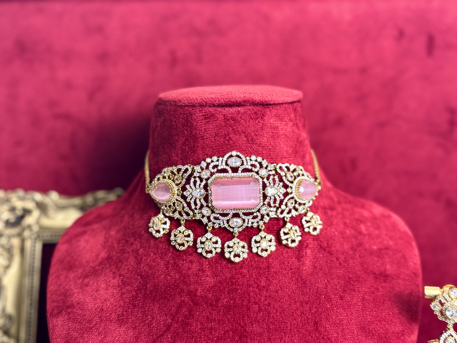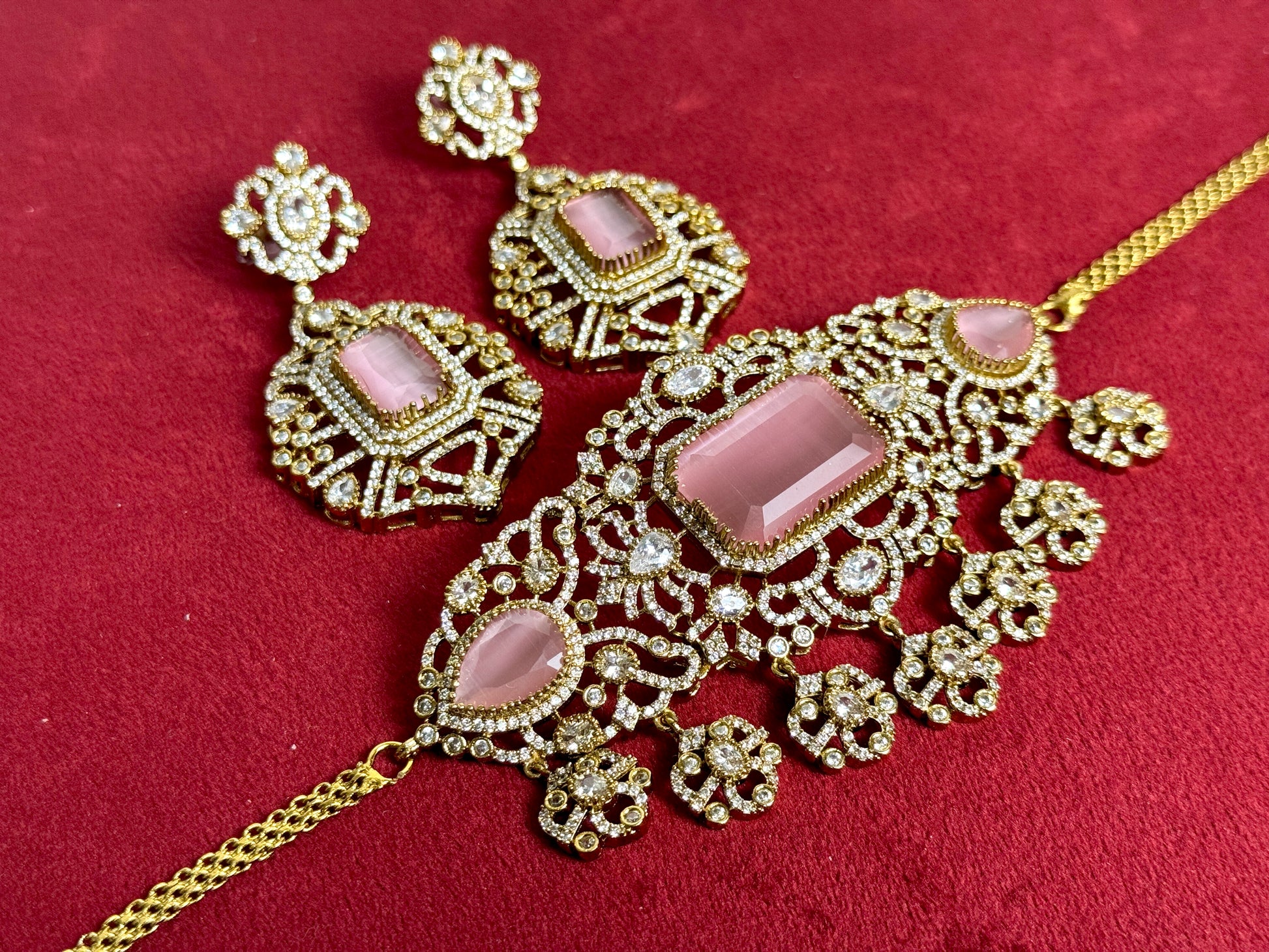 high quality pink and gold moissonite necklace with earrings