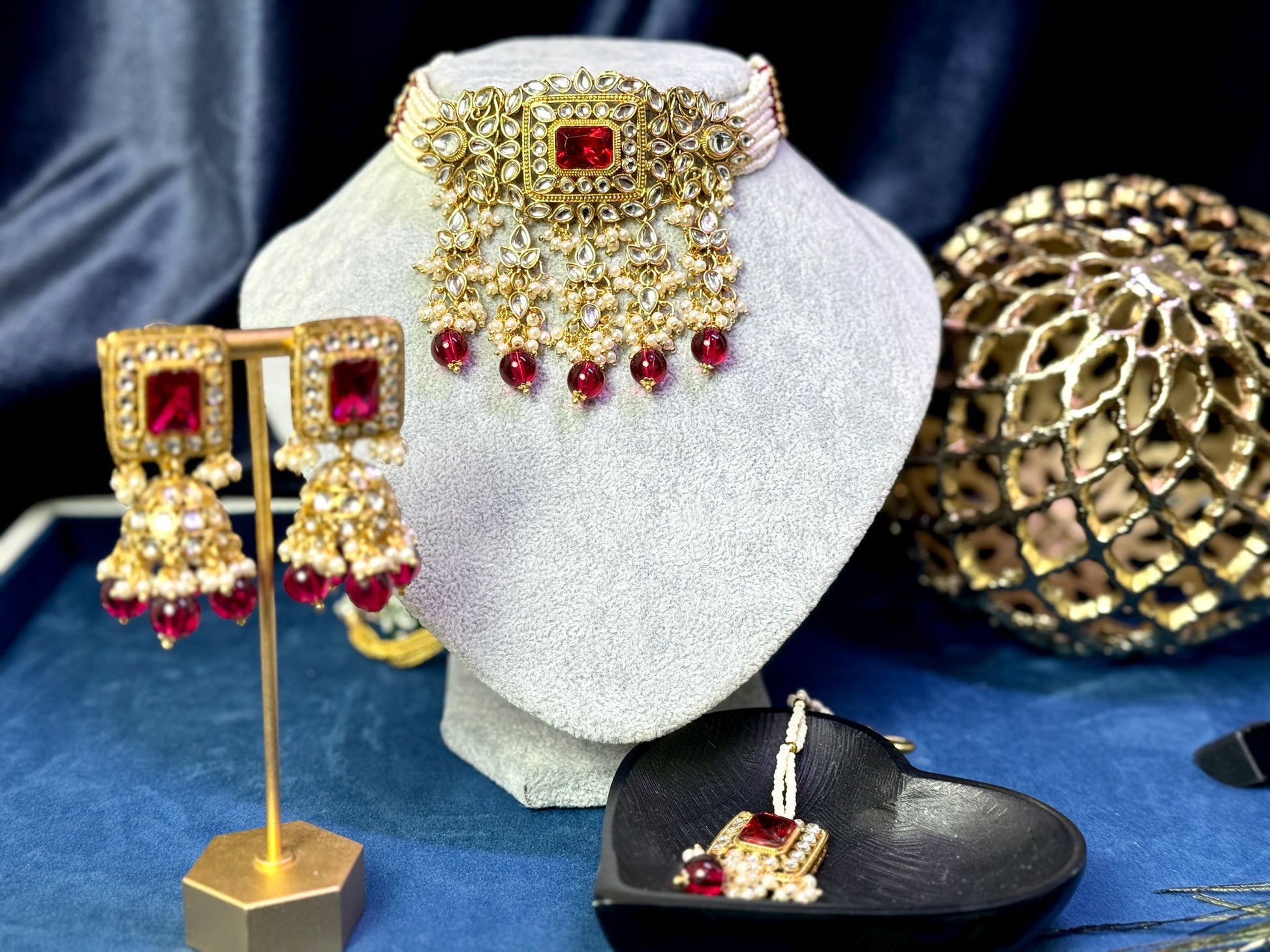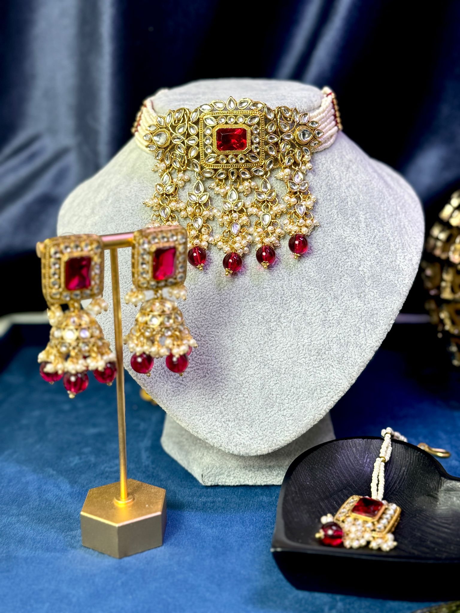 Embrace timeless allure with our Red and Gold Choker Set, a captivating blend of regality and grace. This exquisite set features rich red hues with intricate gold detailing, making it a stunning choice for any special occasion. Elevate your elegance with this statement piece that exudes sophistication.