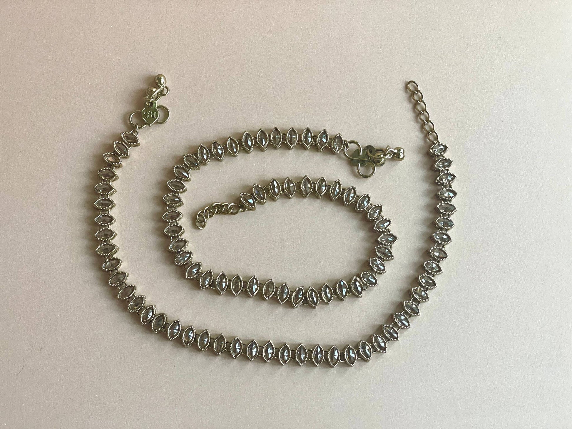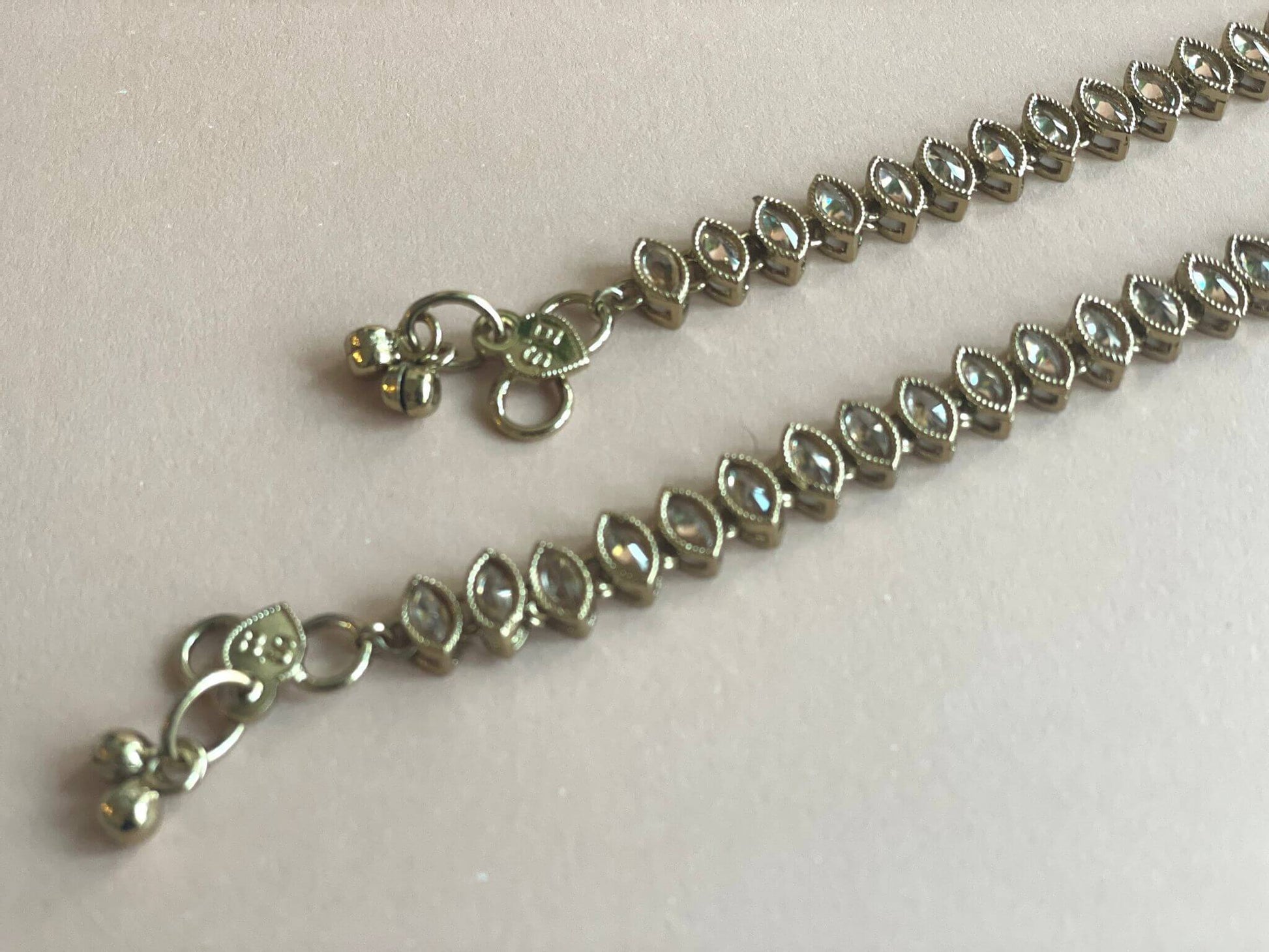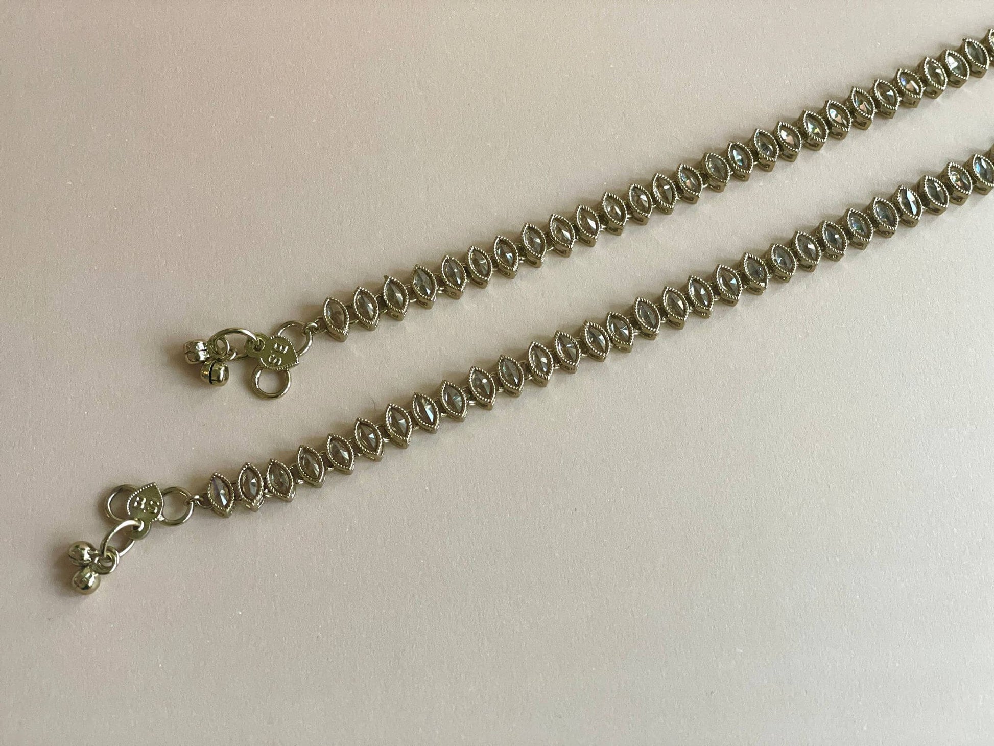 With our magnificent Reverse Ad Gold Payal, tradition and elegance come together. This magnificent artwork, which was created with great skill, intricately displays the classic elegance of Indian design in reverse decoration. Enhance your appearance with the attraction of golden charm, the ideal accessory for every event.