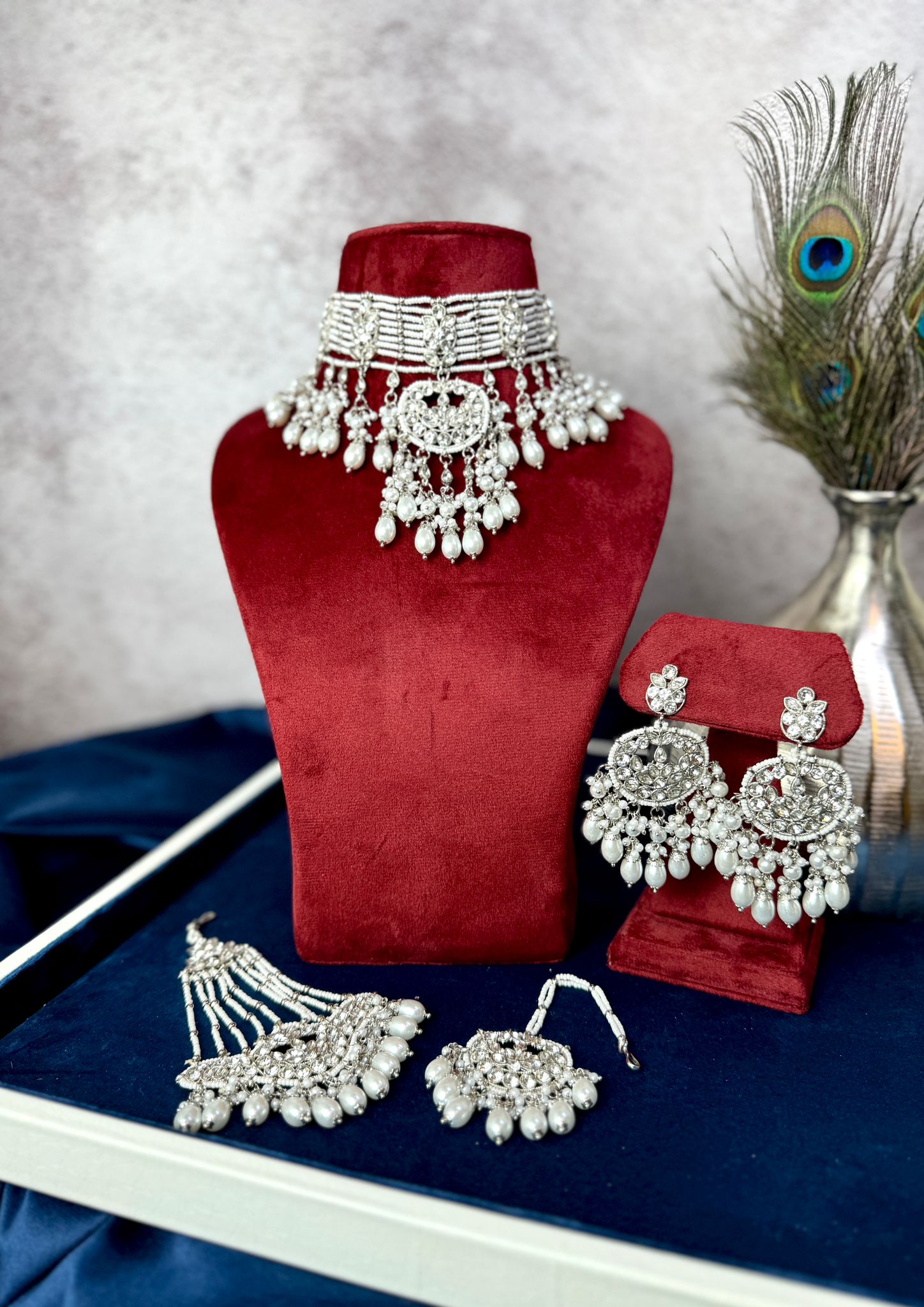 Elevate your bridal elegance with our Silver Pearl Bridal Set. This stunning ensemble features lustrous pearls set against radiant silver, creating a timeless and graceful adornment for your special day. Embrace sophistication and charm as you celebrate your love story with this exquisite bridal accessory.