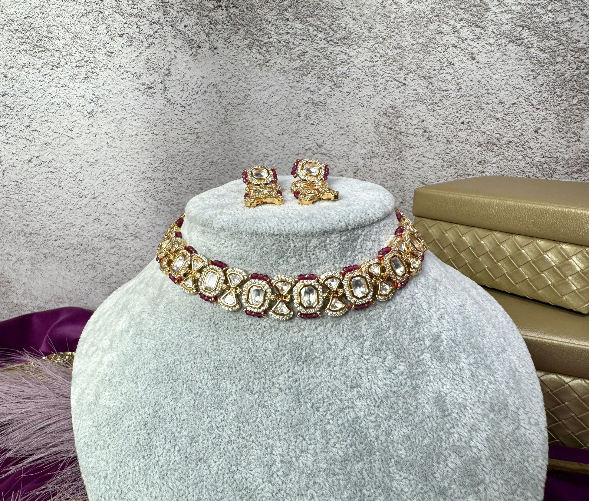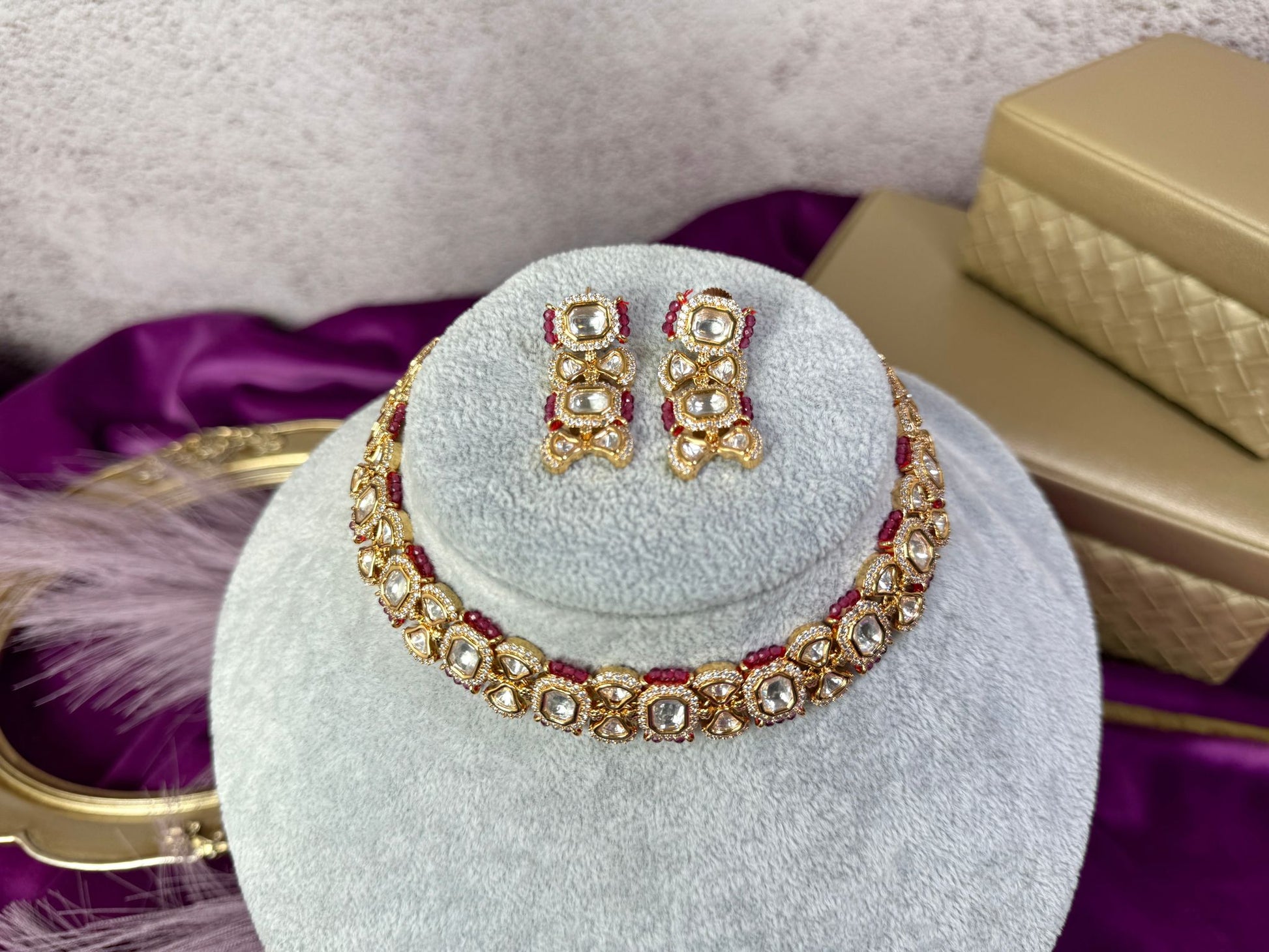 Enhance your allure with our Thin Magenta Kundan Set, a perfect fusion of grace and vibrancy. Delicately designed, this set features a necklace and matching earrings, adding a touch of sophistication to your ensemble. Elevate your style with this exquisite magenta accessory.