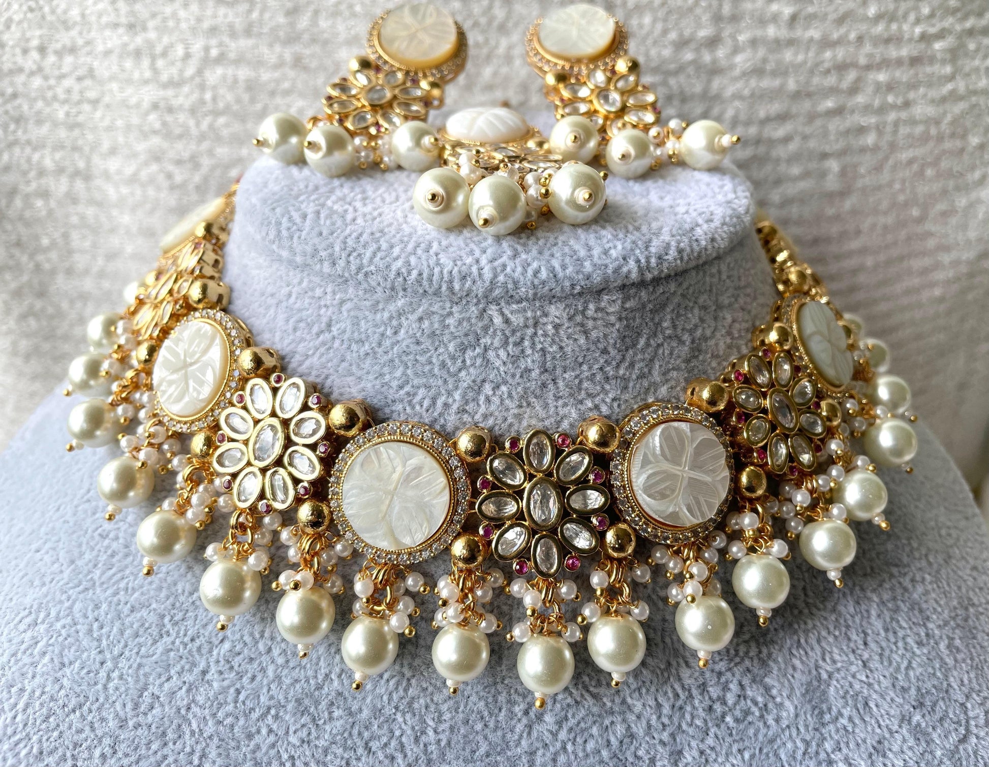 High quality kundan cut choker set with matching earrings and tikka